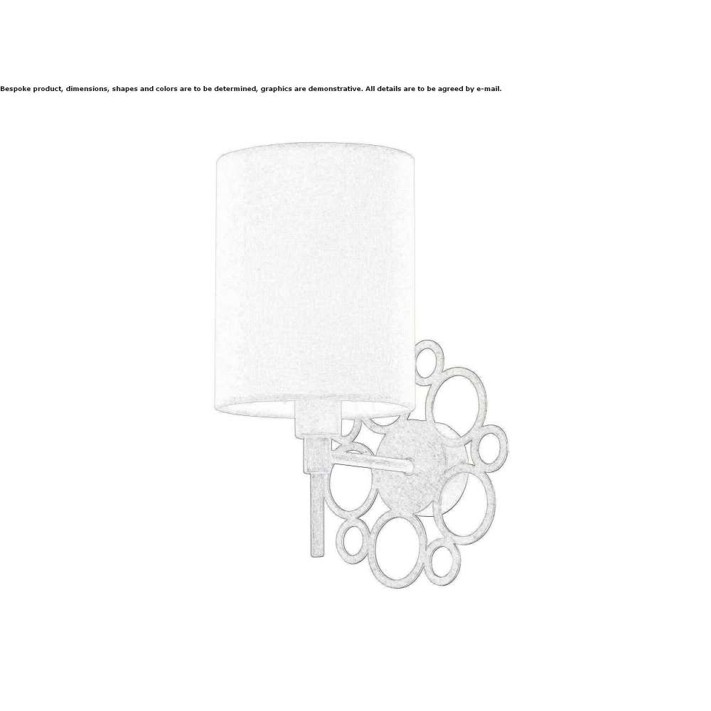 Anna to kinkiet z metalową ramą i cylindrycznym kloszem z PCV pokrytym kremową tkaniną.
