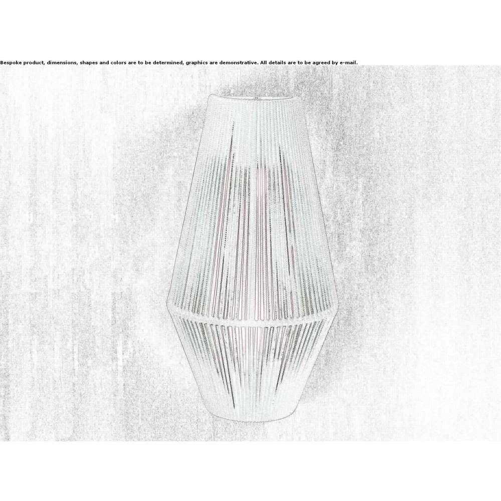 Lampa o etnicznym designie, która łączy w sobie jego akordy ożywiają i chromatyzują najbardziej wymagające i innowacyjne przestrzenie. Sznurki, ręcznie splecione w metaliczną strukturę, przesiewają światło, tworząc niepowtarzalne efekty.