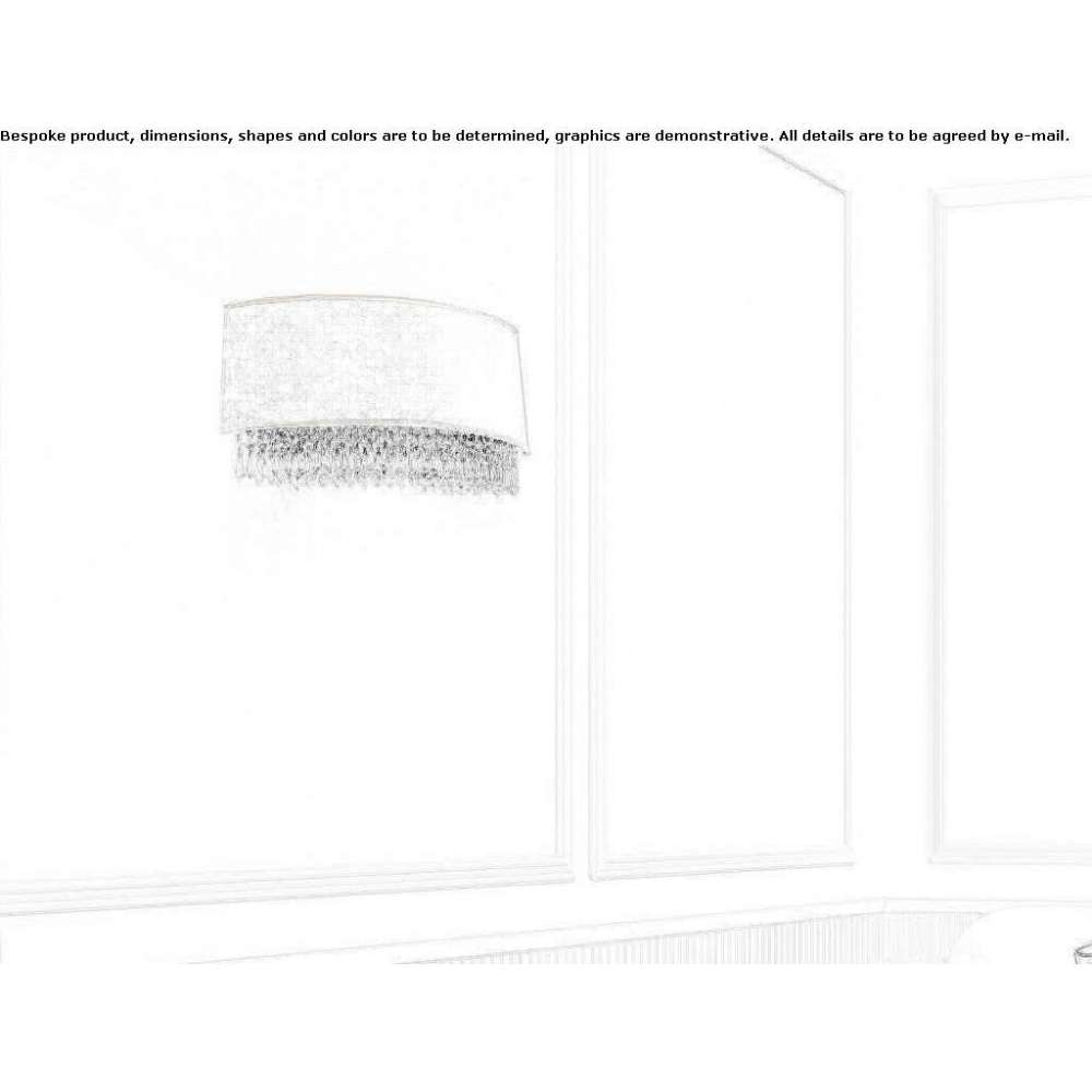 Glassé A4 to kinkiet o metalowej konstrukcji ozdobionej deszczem kryształowych zawieszek. Abażury z tkaniny adamaszkowej.