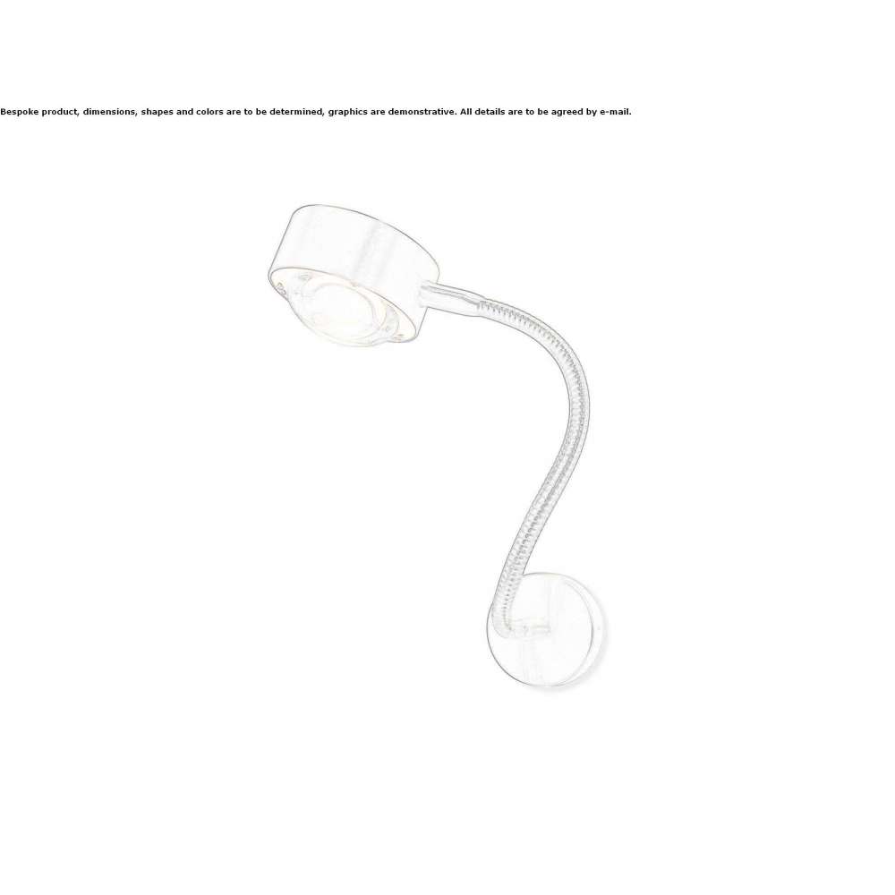 Puk Flexlight Wall - Kinkiet. Można go wyposażyć w okulary, soczewki i filtry barwne oraz głowicę LED z serii „Puk equipment”. Długość ramienia 200, 300 i 400 mm w powierzchniach chromowanych i niklowanych matowych.
