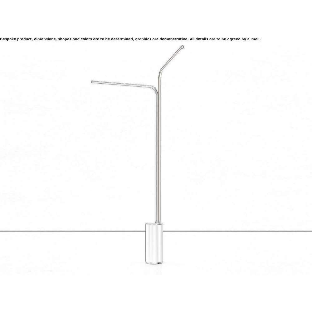 Cylindryczna podstawa podtrzymuje jedno lub dwa ramiona, światło tworzy w obu ciągły i stały znak, zaczynając od podstawy i oświetlając całą długość konstrukcji. Tworzy to rozproszone i otaczające światło, idealne z percepcyjnego punktu widzenia, sprzyjające relacji z otaczającą przestrzenią i tworzące gościnny nastrój. W szczególności wersja dwuramienna jest idealnym rozwiązaniem do pomieszczeń mieszkalnych, ale także do nowych przestrzeni do pracy. Są to bardziej dynamiczne środowiska, które rzadko odpowiadają standardowym układom i tradycyjnym stanowiskom pracy, zamiast tego służą nieformalnym obszarom spotkań i tymczasowym stanowiskom pracy.