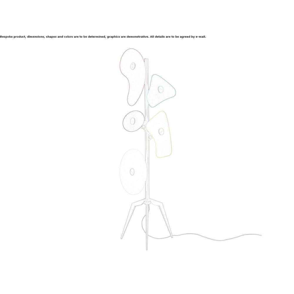 Orbital to lampa podłogowa ze statywem wykonana ze szkła sitodrukowego i lakierowanego metalu.