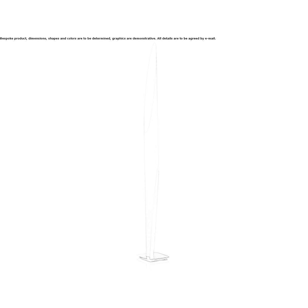 Lampa podłogowa z dwoma światłami do czytania i oświetlenia otoczenia, które można przyciemniać. Rozpraszacz światła to wycięta laserowo, wytłaczana rurka z pleksiglasu, przymocowana do satynowej podstawy.