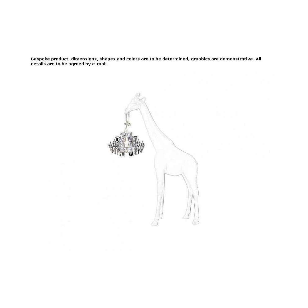 ŻYRAFA ZAKOCHANA XS– Lampa Miniaturowa wersja „Małej Żyrafy” ma 100 cm wysokości (dokładna reprodukcja pełnowymiarowej) i staje się wszechstronnym i kultowym obiektem designerskim w pełnym stylu Qeeboo. Kolory: biały, czarny, burzowa szarość, zakurzony róż, ciepły piasek, zimny piasek MAX 4,5W E14 LED 220V-240V~ 50Hz | IP 20 „Zakochana żyrafa” to nowy produkt powstały w wyniku współpracy artysty/projektanta Marcantonio i Qeeboo. To marzycielska żyrafa trzymająca żyrandol w klasycznym stylu Marii Teresy. „Zakochana żyrafa” reprezentuje ironię i lekkość: żyrafa jest zakochana, ale jeszcze o tym nie wie, ponieważ jej serce jest daleko od głowy i ona żyje miłością beztrosko.