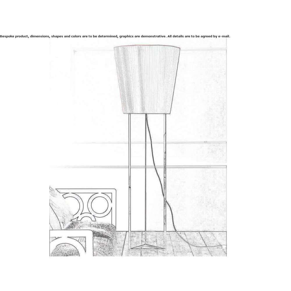 FIORE firmy Erba to podłogowa lampa trójkątna o konstrukcji w jasnym chromowanym wykończeniu lub wykończona lakierem epoksydowym bez rozpuszczalników. Klosz FLOWER wykonany z jedwabnej wstążki satynowej.