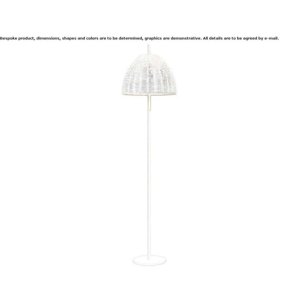 Amà to lampa podłogowa o konstrukcji z białego lub polerowanego mosiądzu. Ręcznie robiony klosz z naturalnej wikliny.