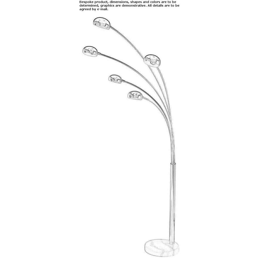 Materiał: marmur, stal chromowana, tworzywo sztuczne PMMA, włącznik nożny, 5x E14, max. 40W