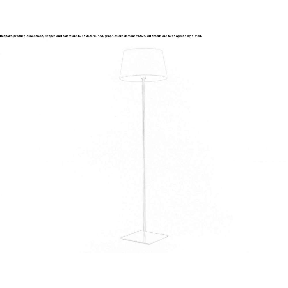 Metalowa lampa podłogowa, wykończenie satynowo-niklowe. Podstawa kwadratowa. Oprawka E27. Klosz i żarówka nie są dołączone. Polecane odcienie: 57990, 62565, 801011/45, 801021/45, 151011/45, 151021/45.