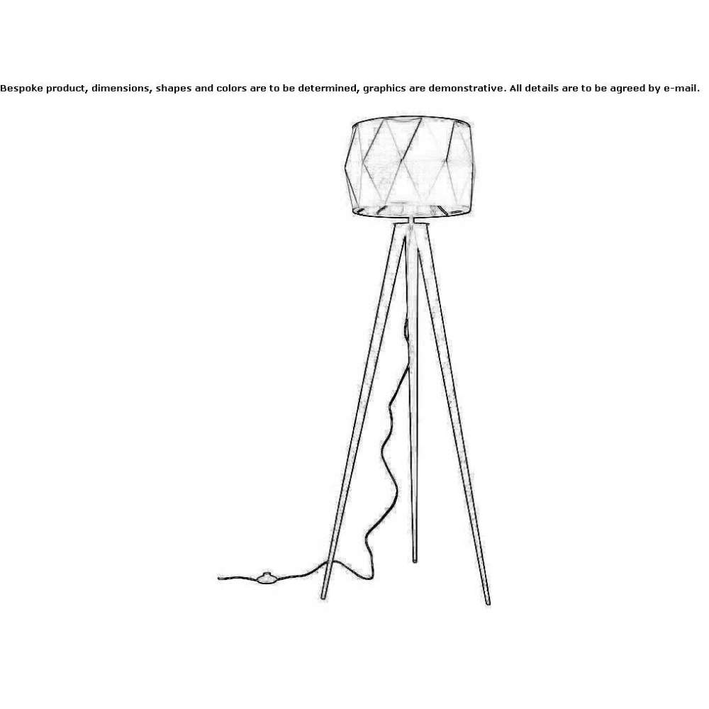 Ikona jutra. Długie nogi i kompaktowy abażur z wytłoczeniem rombu – lampa standardowa Tripod urzeka kobiecą sylwetką i ekscytującymi proporcjami, podkreślonymi czarnym kolorem. Mocna atrakcja do każdego wnętrza - od stylu retro, poprzez styl shabby, po nowoczesny szyk.