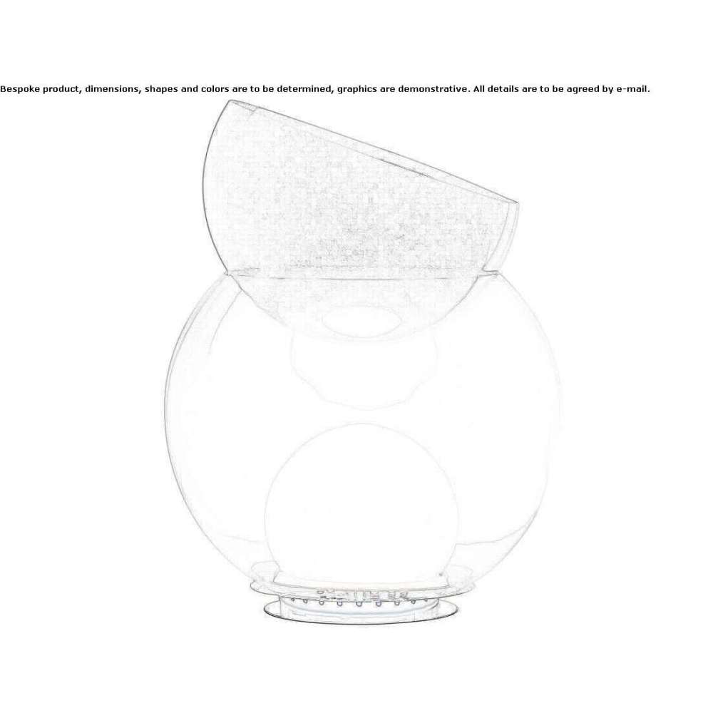 Lampa stołowa z rozproszonym światłem, bez możliwości ściemniania. Ocynkowana metalowa rama. Kula środkowa wykonana z przezroczystego dmuchanego szkła. Wewnętrzna kula wykonana z białego, błyszczącego, dmuchanego szkła. Górna półkula wykonana z przezroczystego i kolorowego dmuchanego szkła z ozdobnymi bąbelkami. Czarny kabel zasilający, przełącznik i wtyczka. Europejska wtyczka dwubiegunowa. Zestaw nie zawiera żarówki.
