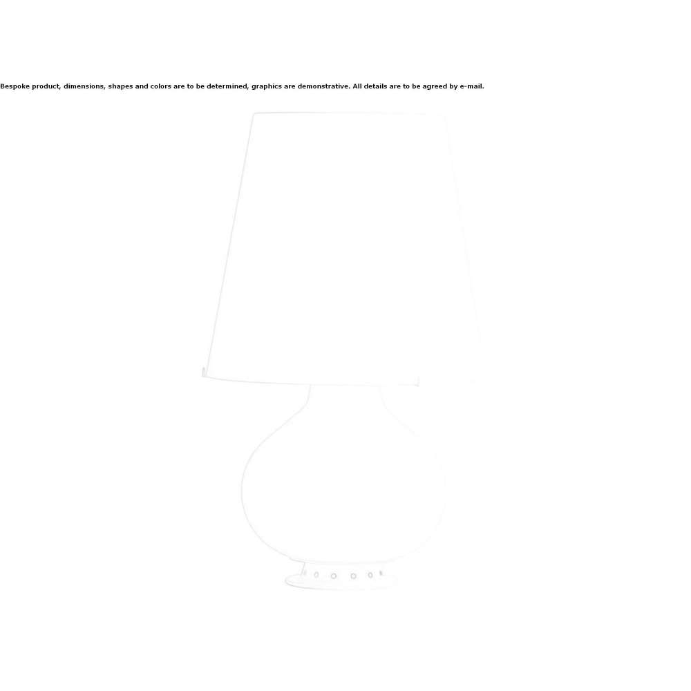 Lampa stołowa z rozproszonym/pośrednim światłem, bez możliwości ściemniania, z potrójną regulacją światła. Potrójna regulacja światła umożliwia osobne oświetlenie podstawy, góry i dołu. Malowana metalowa rama. Klosz i podstawa wykonane ze szkła satynowanego i dmuchanego. Czarny kabel zasilający, wtyczka i przełącznik. Europejska wtyczka dwubiegunowa. Żarówka nie jest dołączona do zestawu.