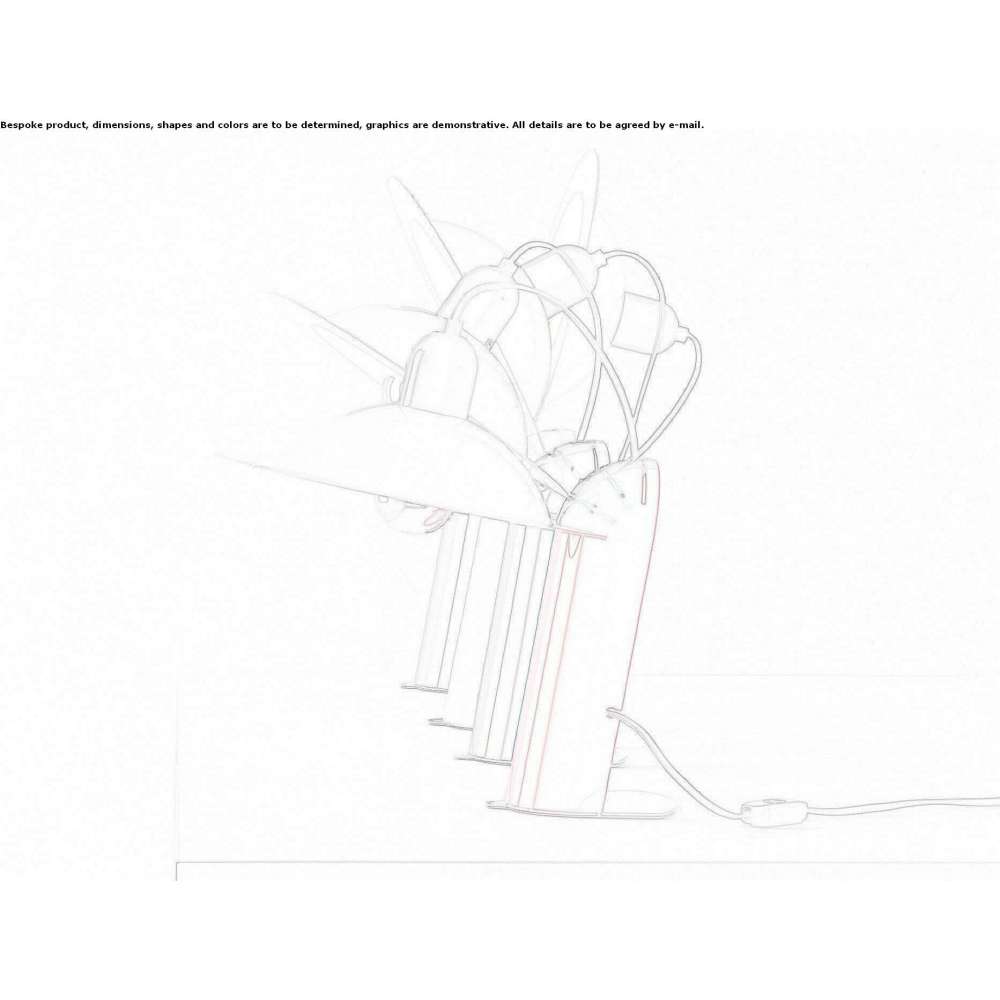 Lampiatta może być łatwo zmieniona bez użycia złączy lub mechanizmów. Klosz został zaprojektowany tak, aby można go było umieścić w dowolnym miejscu w jednym z czterech otworów w podstawie, co pozwala na dowolne nachylenie i skierowanie światła.