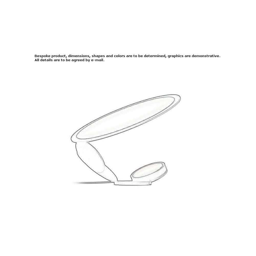Wycięta laserowo aluminiowa konstrukcja złożona w kilku punktach łączy dwa elementy: źródło światła osadzone w okrągłej metalowej podstawie oraz pierścień, na którym zamocowany jest półprzezroczysty dysk dyfuzora.