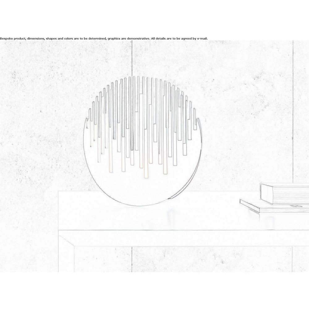 Jest wykonany w całości z blachy stalowej, a dwa łukowate dyski zawierają światło zamknięte w opalizującym ekranie dyfuzora.