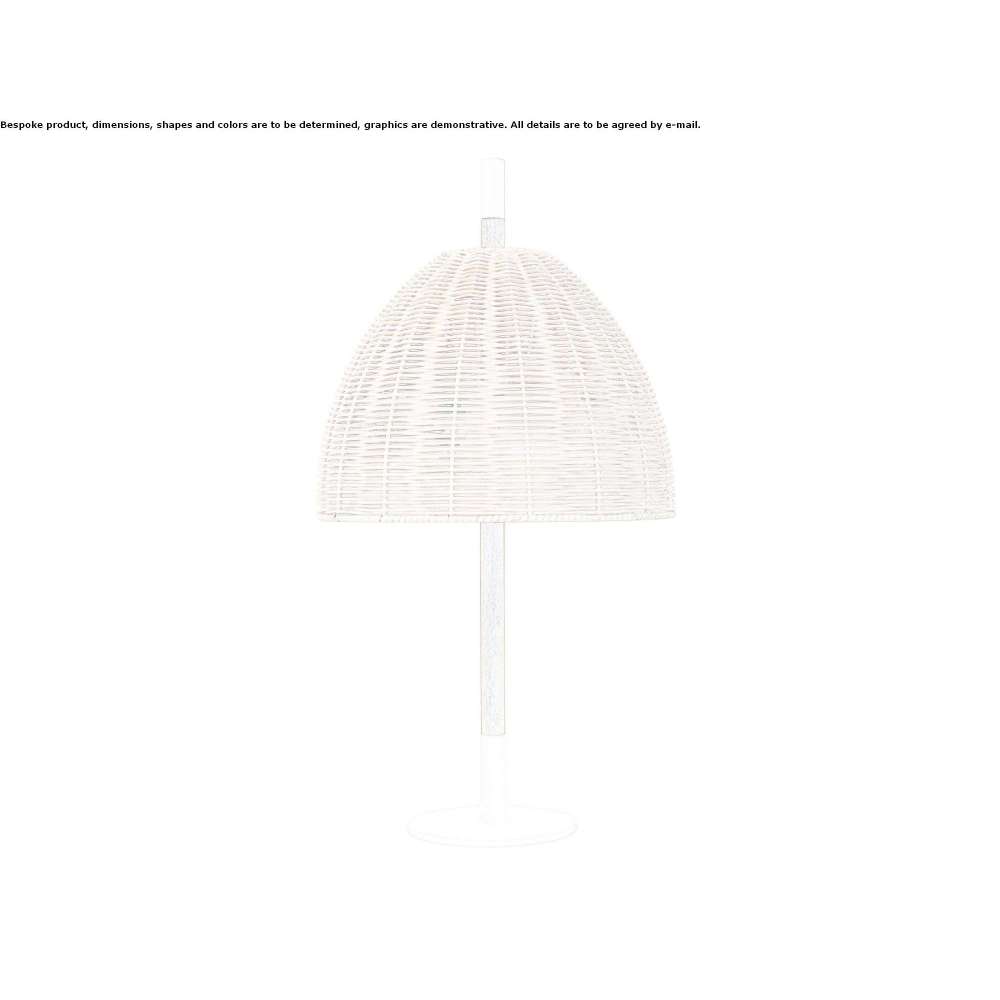 Amà to lampa stołowa ze strukturą z białego lub polerowanego mosiądzu. Ręcznie robiony klosz z naturalnej wikliny.