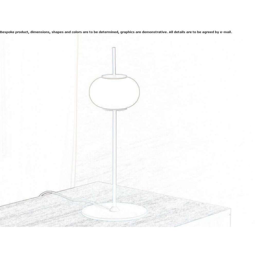 Astros to lampa stołowa wykonana z opalowego dmuchanego szkła o stalowej konstrukcji dostępna w dwóch wysokościach.