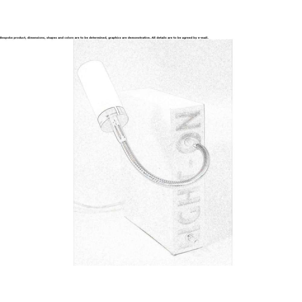 Light On – ciężka lampa półkowa i podpórka do książek, które można indywidualnie łączyć. Zintegrowany ściemniacz z przezroczystym kablem, przełącznikiem i wtyczką. Podstawa pokryta filcem. Waga 4,5 kg łącznie z lampą halogenową G9 opal. Maks. 33 W EKO. Możliwe kombinacje: Korpus – wzór granitowy, płaski biały, czerwony, edycja ze złotym liściem, edycja ze srebrnym liściem. Elastyczne ramię o długości 30 cm i ściemniacz obrotowy – chrom, nikiel matowy, złote wykończenie, zintegrowany ściemniacz. Głowice – Pisa, jedwabiście biała, jedwabiście czarna, jedwabiście czerwona. Opcja: Przegroda do szkła Pisa.