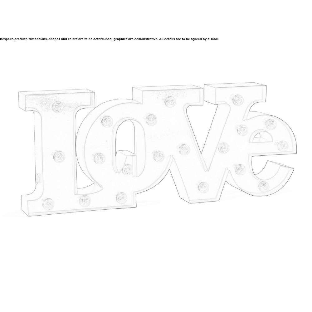 WML019A - LOVE to dekoracyjna lampa wykonana z kształtowanego i spawanego metalu z żarówkami LED, nadająca się również do montażu na ścianie.