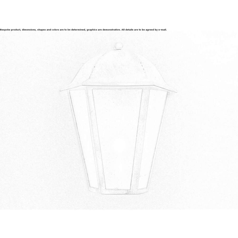 Marmi to żelazna latarnia ścienna z przezroczystymi szybami, ocynkowana i malowana proszkowo.