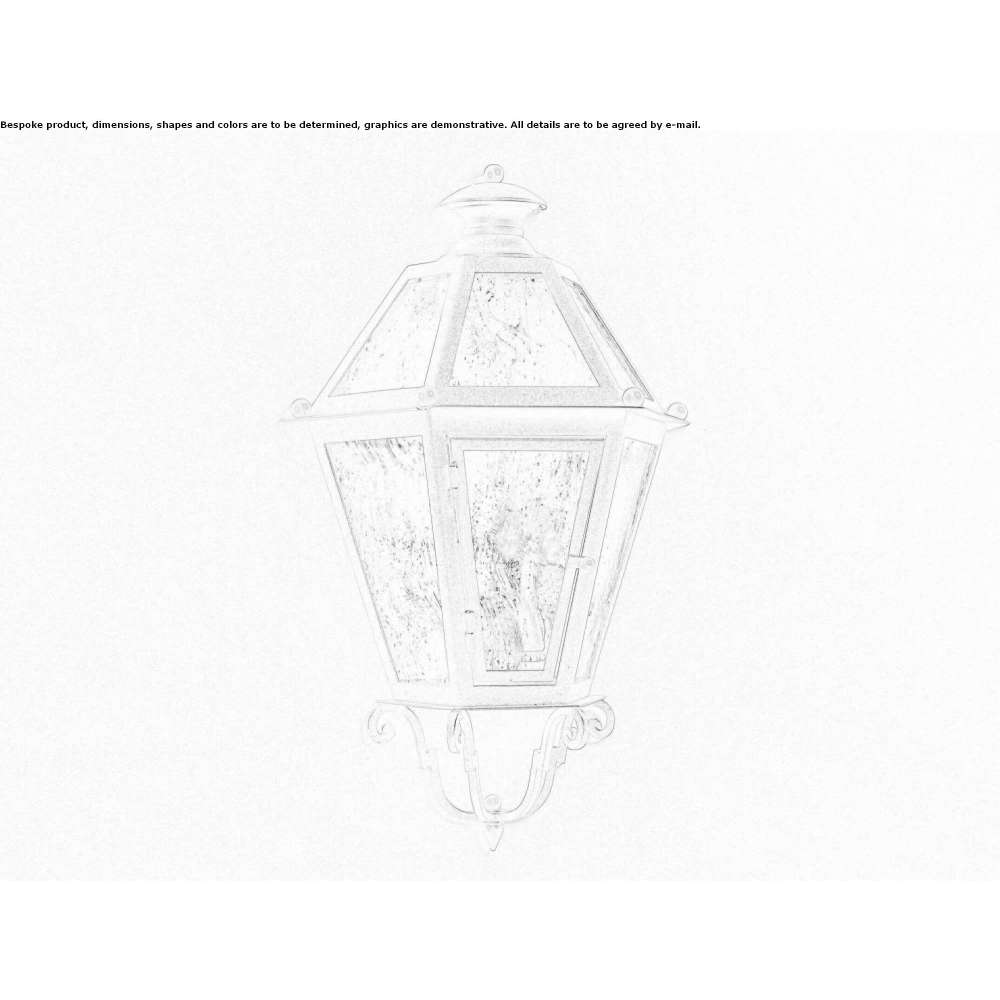 Esagona to żelazna półlatarnia z przezroczystymi szybami, ocynkowana i malowana proszkowo.