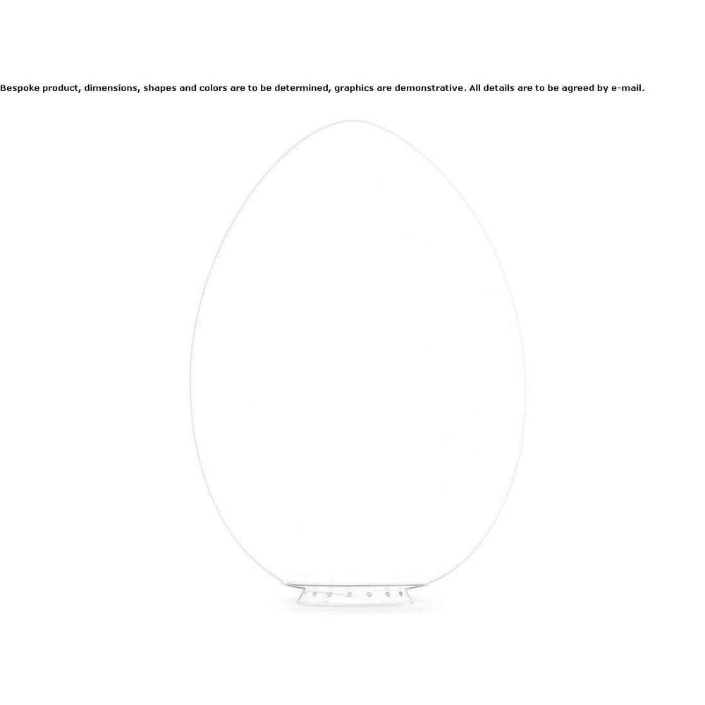 Uovo to zewnętrzna lampa stołowa lub podłogowa ze ściemnianym rozproszonym światłem. Klosz z opalowego, satynowego białego polietylenu wykonany metodą formowania rotacyjnego. Rama ze stali nierdzewnej. Czarny przewód zasilający. Wtyczka Schuko. Źródło światła i ściemniacz nie wchodzą w skład zestawu.