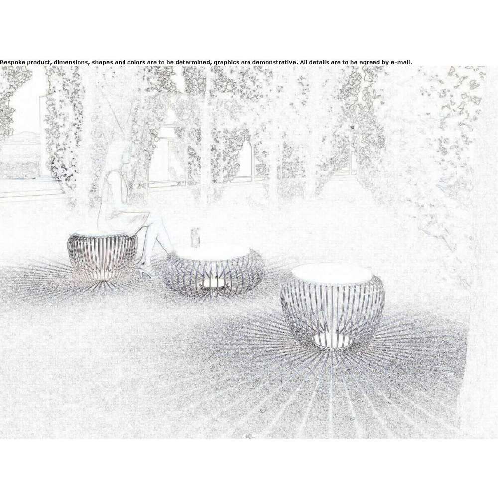 Kolekcja lamp podłogowych Meridiano, zaprojektowana przez Jordiego Vilardella i Meritxella Vidala dla Vibia, emituje komfortowe światło, które generuje wzory światła i cienia, tworząc magiczny efekt świetlny. Lampy zewnętrzne Meridiano spełniają podwójną funkcję, a także są oprawą świetlną, którą można wykorzystać jako stołek lub stolik boczny, co doskonale integruje się z przestrzeniami zewnętrznymi, takimi jak ogrody, dziedzińce i tarasy przy basenach. Lampy Meridiano wyposażone są w źródło światła LED, które zapewnia pośrednie światło spod klosza. Struktura prętów stalowych jest zorganizowana w sposób kołowy. Lampa Meridiano jest produkowana w trzech kolorach do wyboru przez klientów: lakierowany matowo khaki, lakierowany matowo w kolorze złamanej bieli i lakierowany matowo w kolorze zielonym.