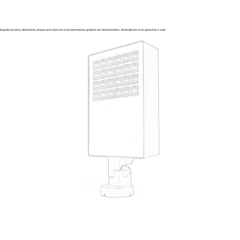 Naświetlacz do montażu na zewnątrz na fasadzie/ścianie, z podstawą obrotową 355° i możliwością regulacji w poziomie w zakresie +90° / -40°. Podstawa i głowica z fosfochromowanego i poliestrowego odlewu proszkowego z aluminium niezawierającego miedzi, hartowane szkło bezpieczne, formowane uszczelki i pierścienie uszczelniające z silikonu, ze śrubami ze stali nierdzewnej. Przegub obrotowy ze skalą i mechaniczną blokadą celowania.
