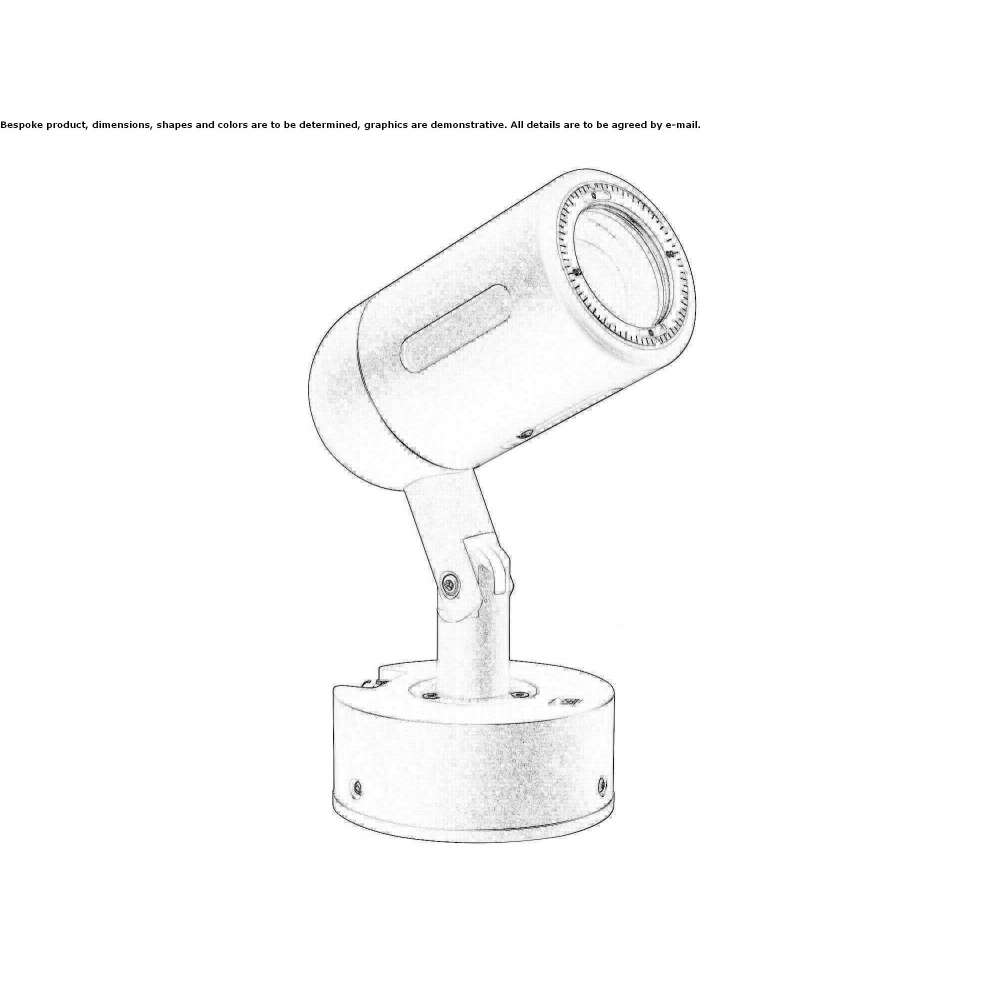 Projektor do zastosowań zewnętrznych; montaż natynkowy (sufit, ściana, ziemia); korpus z aluminium anodyzowanego na czarno EN AW 6082, ekran ze szkła hartowanego; wykończenia: aluminium anodyzowane na czarno; 1 dioda LED zasilania COB o wysokiej intensywności; 43 W — 230 V AC; wbudowany zasilacz; Obiektyw zmiennoogniskowy 13°–32, 16°–42; Kolor diody LED: biały - 2700K, 3000K, 4000K; Wersje CRI 80 i CRI 90; stopień ochrony: IP66; odporność na uderzenia: IK06; wyposażony w PID; temperatura pracy: -20°C+45°C; temperatura ekranu: max 40°C (Ta 25°C); bezpieczeństwo fotobiologiczne: grupa ryzyka 1 zgodnie z EN62471:2006; klasa urządzenia: II; waga 5,60 kg; wymiary Ø109x252 mm; akcesoria: ssawka standardowa, ssawka asymetryczna, wrota do stodoły, filtry: dichroiczny, optyczny, konwersja temperatury barwowej, raster o strukturze plastra miodu, akcesorium do wydobycia wkładu IP66, wkład makietowy