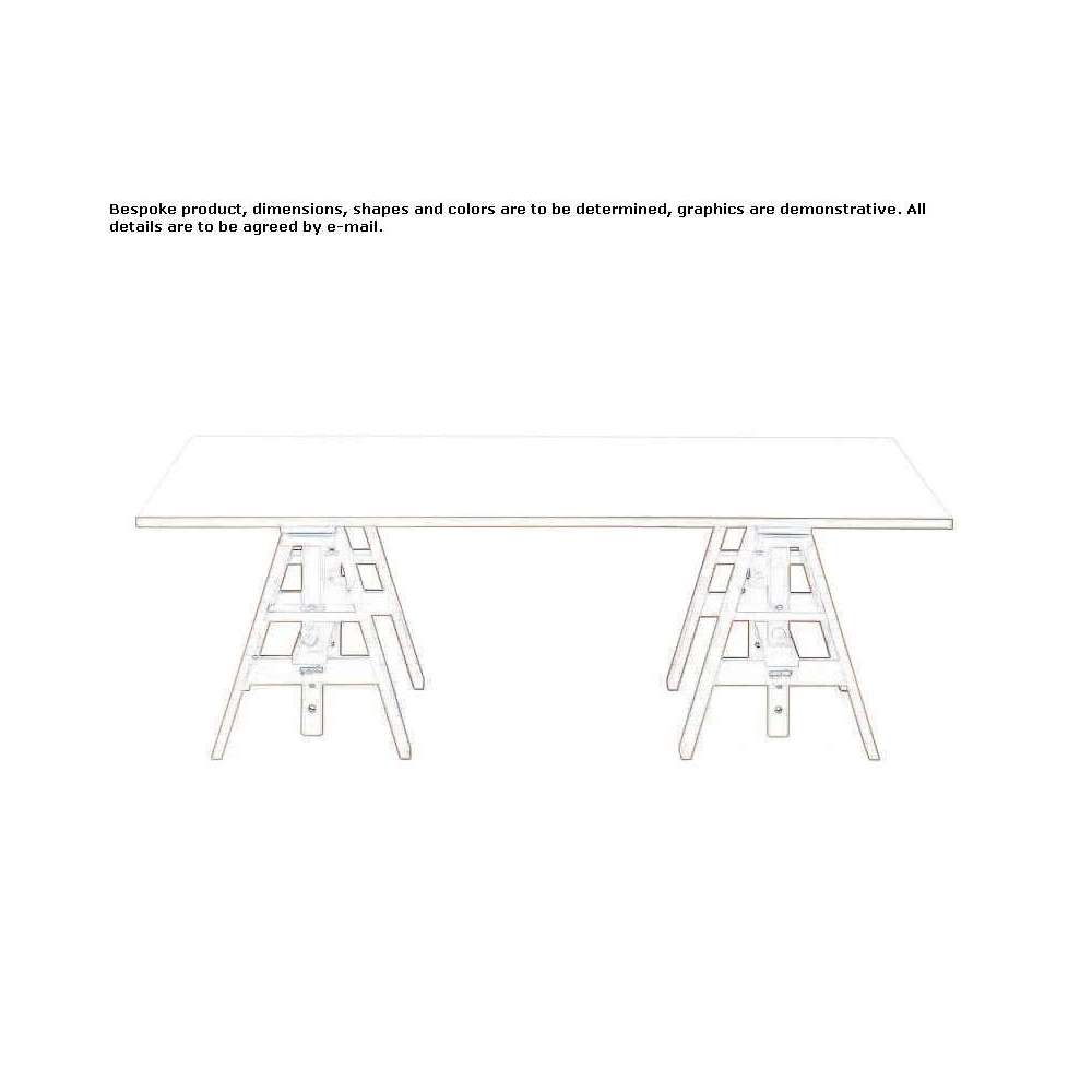 LEONARDO - Stół roboczy. Kozioł bukowy lakierowany naturalnie, poddany obróbce parowej. Górna część pokryta białym laminatem z tworzywa sztucznego lub hartowanym szkłem płaskim. Regulowana wysokość