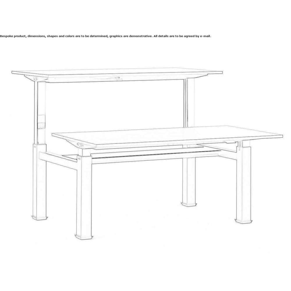 FOLLOW to stół z regulacją wysokości, który bez wysiłku i bezgłośnie dopasowuje się do postawy i potrzeb użytkownika. Dwa biurka połączone ze sobą pojedynczą malowaną metalową ramą, każdy z uchwytem do regulacji wysokości ze wzmocnionego nylonu. Dostępny z wielofunkcyjnym modułem do okablowania elektrycznego zintegrowanym w górnej części i z korytkiem kablowym. Stół, który można postawić i przenieść w dowolne miejsce: nie jest podłączony do żadnego kabla, ponieważ nie wymaga podłączenia do prądu. Dostępny jest również dźwiękochłonny panel działowy, który może stworzyć dwie autonomiczne, ale jednocześnie dynamiczne przestrzenie do pracy.