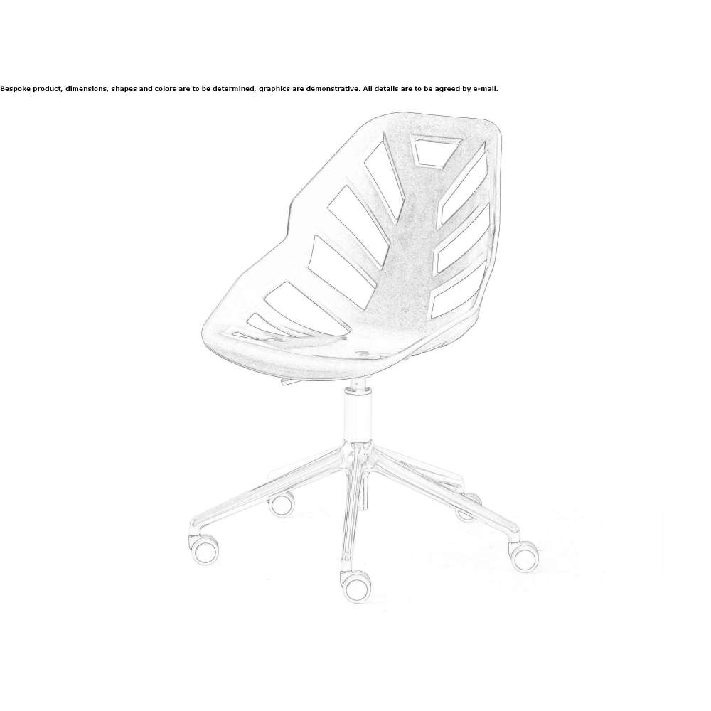 Obrotowe na podstawie z 5 ostrogami z polerowanego aluminium i kółkami, z regulacją wysokości, skorupa z technopolimeru. Krzesło charakteryzujące się alternatywnym i atrakcyjnym designem, wykonane z skorupy z polimeru techno, przymocowanej do różnych podstaw w chromie, do użytku wewnątrz pomieszczeń. Istnieje również możliwość pomalowania ramy do użytku na zewnątrz.