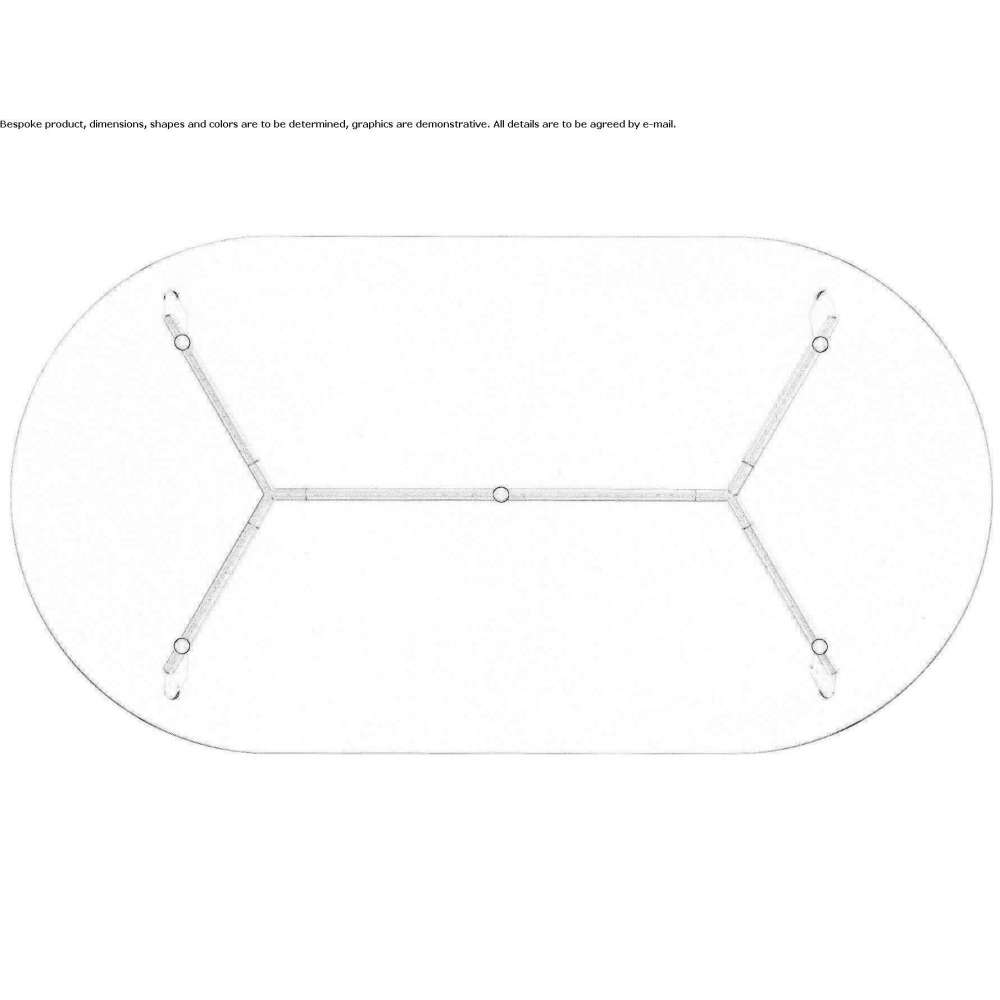 Stół modułowy z demontowalną ciągnioną stalową ramą i przegubami z odlewanego ciśnieniowo aluminium. Regulowane nóżki i górne płyty nośne ze stali nierdzewnej. Szklane blaty.