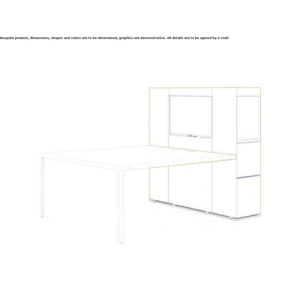 Isola Video to produkt przeznaczony do umieszczenia na ścianie, składający się z konstrukcji nośnej i stołu konferencyjnego More H75 cm z metalowym