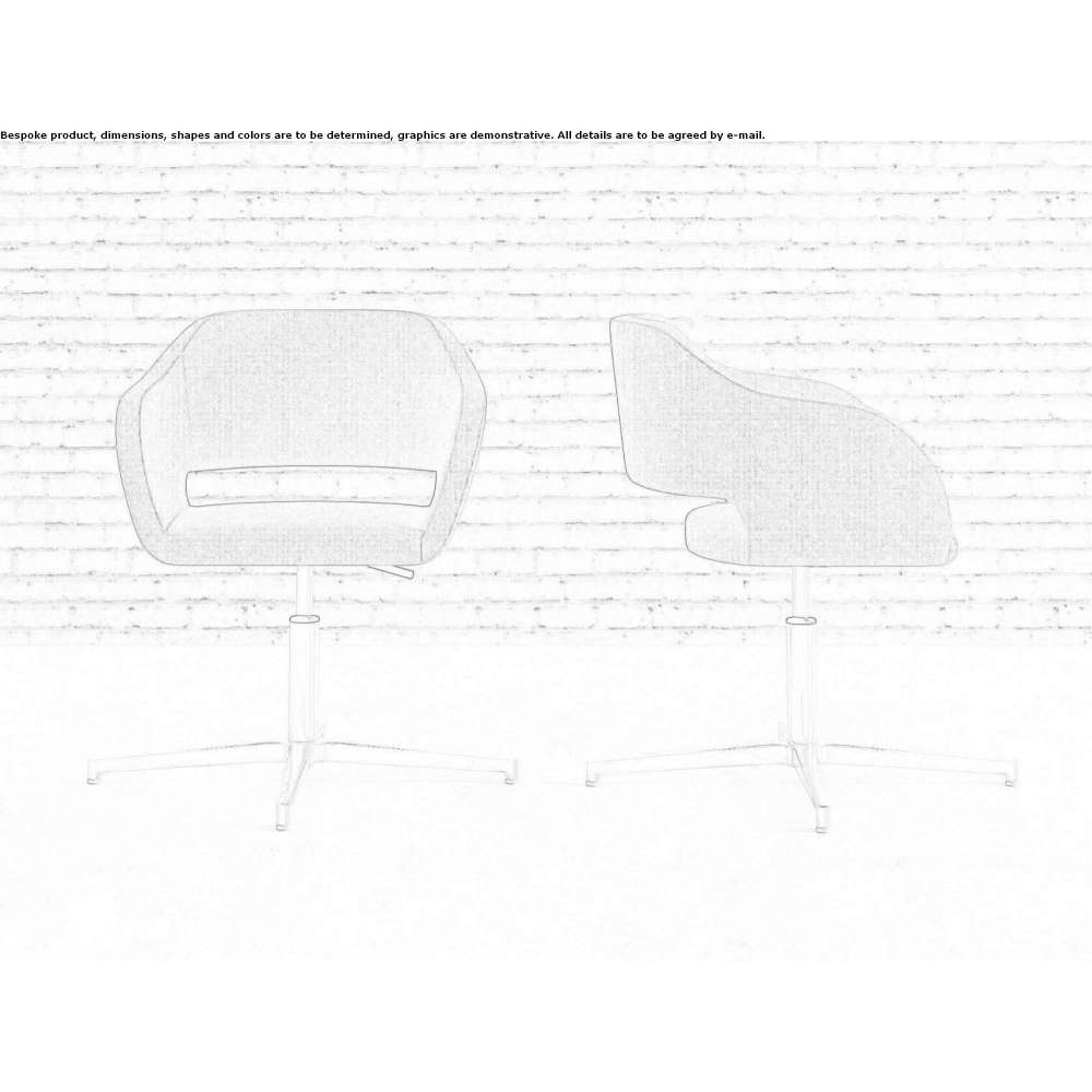 Fotel tapicerowany do sal konferencyjnych lub poczekalni. Zintegrowana konstrukcja siedziska, oparcia i podłokietników zapewnia optymalny komfort w każdym kontekście. Jego kształt podkreśla pokrycie, sugerując kombinacje kolorów w pasujących odcieniach lub przy użyciu różnych tkanin.