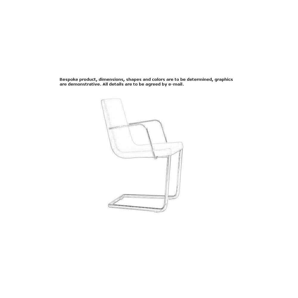 Fotel z tapicerowanym siedziskiem i oparciem oraz stalową podstawą wspornikową z owalnej płyty wykończoną w polerowanym chromie, białym lub czarnym. Opcjonalnie: Tapicerowane podłokietniki. Krzesła, fotele i fotele wypoczynkowe z podłokietnikami lub bez, z tapicerowaną skorupą i stalową podstawą sań z polerowanym chromowanym wykończeniem. Modele krzeseł i foteli ze wspornikową owalną stalową podstawą z polerowanym chromowanym wykończeniem, 4-nożną podstawą z litego drewna bukowego lub centralną kolumną obrotową z 5 kółkami, z regulacją wysokości i wykończoną w polerowanym aluminium w kolorze białym lub czarnym. Wersja fotela z tapicerowanym siedziskiem, oparciem i ramionami oraz stalową podstawą z sań z polerowanym chromowanym wykończeniem lub centralną aluminiową obrotową 4-ramienną podstawą z funkcją samopowrotu i wykończoną w polerowanym aluminium w kolorze białym lub czarnym. Wersje stołków barowych z podstawą z 4 nóg bukowych, podstawą stalowych sań i wykończeniem z polerowanego chromu lub podstawą obrotową z 4 nogami ze stali z wykończeniem z polerowanego chromu. Stołki barowe oferowane są w 2 różnych wysokościach.