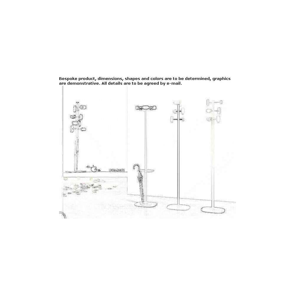 Łącząc drewno i stal, projektant stworzył kolekcję w stylu skandynawskim, która harmonijnie komponuje się z otwartymi przestrzeniami i obszarami zbiorowymi. Stojący na podłodze wieszak na ubrania jest dostępny w 2 głównych formach: w kształcie korony lub w kształcie gałęzi z opcjonalnym kwadratowym trzonkiem z mieszanki drewna i stali.