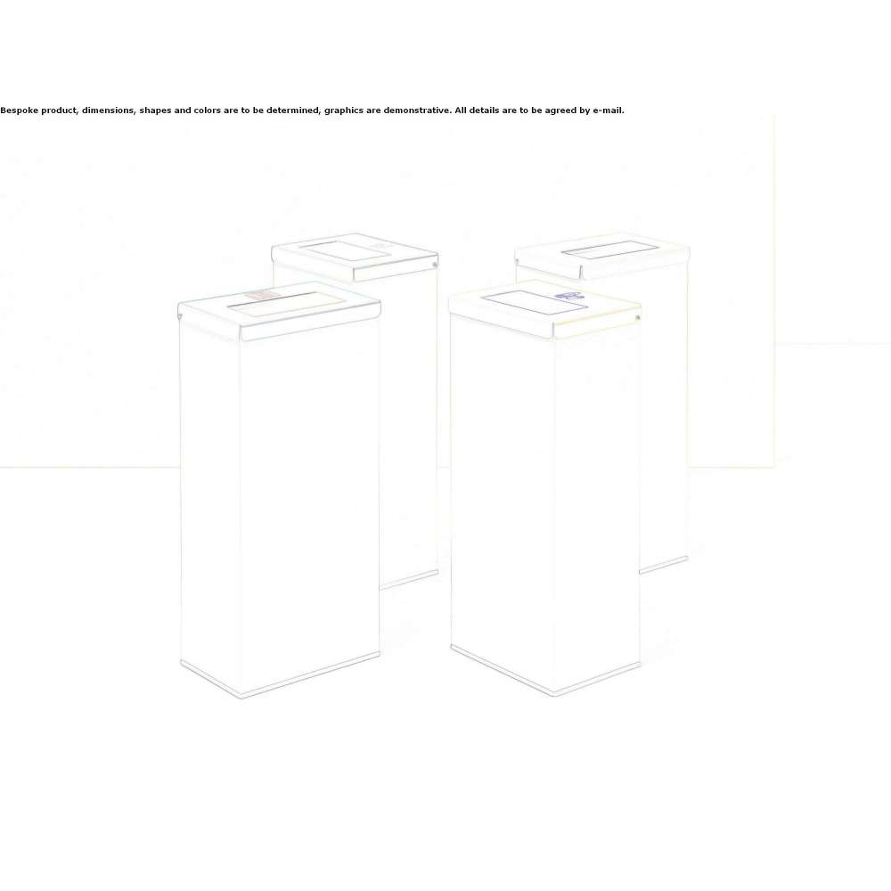 Kosz do recyklingu z metalu, pomalowany na szaro farbą epoksydową, o pojemności 76 litrów, z uchylną pokrywą i wewnętrznym pierścieniem na plastikową torebkę. Górna zakrętka dostępna w 4 podstawowych kolorach pochodzących z recyklingu. Idealny do biur, centrów handlowych i miejsc publicznych o dużym natężeniu ruchu.