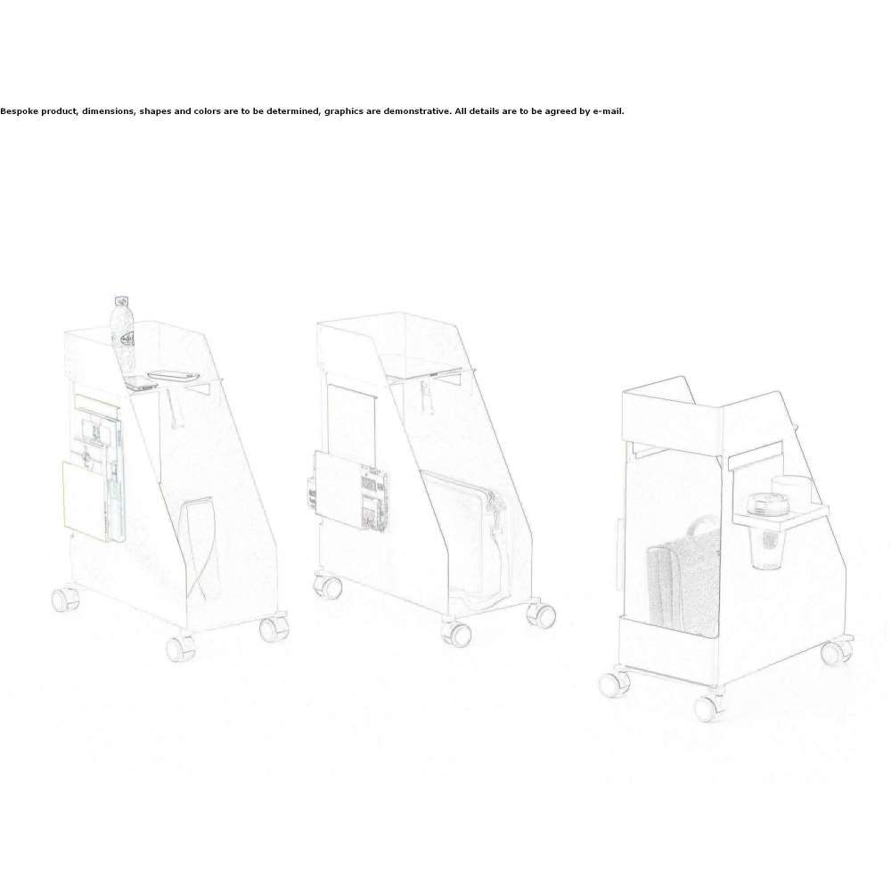 Sklep - Pomocnicze meble osobiste, zaprojektowane w celu optymalizacji przestrzeni do pracy dzięki swojej funkcjonalności i mobilności. Zawiera uchwyt ułatwiający przenoszenie, półkę na czasopisma oraz opcjonalnie półkę przystosowaną do podtrzymywania napojów i drobnych przedmiotów. Obydwa dodatki można zawiesić z jednej lub drugiej strony, aby poprawić ergonomię użytkownika.