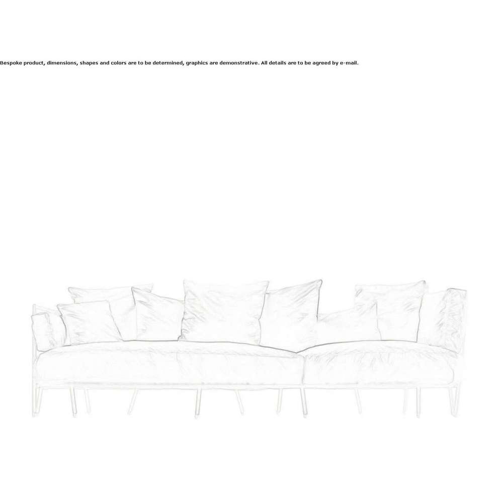 Trzyosobowa sofa do użytku na zewnątrz ze strukturą ze stali emaliowanej piecowo. Zdejmowane pokrycie z tkaniny kvadrat® lub 100% kolorowej tkaniny akrylowej i wypełnienie z ekspandowanej żywicy alkidowej. Poduszki w cenie. Kolekcja dehors została zaprojektowana z myślą o stworzeniu idealnego „salonu ogrodowego”, inspirowanego naturą i jej nieregularnymi kształtami. Jest to system zbiorczy składający się z fotela, sofy i szezlongu charakteryzujący się ramą ze stali poddanej obróbce do użytku na zewnątrz i pokrytą nieprzezroczystym tłoczonym proszkiem. Poduszki Dehors są odporne na warunki atmosferyczne dzięki starannie dobranym wyściółkom i pokrowcom. Struktura produktów z kolekcji dehors różni się od zwykłych pionowych linii, a mimo to tworzy solidną ramę, w której każda noga równoważy drugą. Rezultatem jest zbiór falistych struktur, które porzucają wszelkie roszczenia do rygoru architektonicznego i oferują nieoczekiwany stopień komfortu. Dehors z zadowoleniem przyjmuje naturalistyczną formę architektury i wprowadza nową, dynamiczną logikę komfortu. Fotele, sofy, szezlongi wyróżniają się, harmonijnie komponując się z zielonymi przestrzeniami, tworząc atmosferę wyrafinowanego relaksu.
