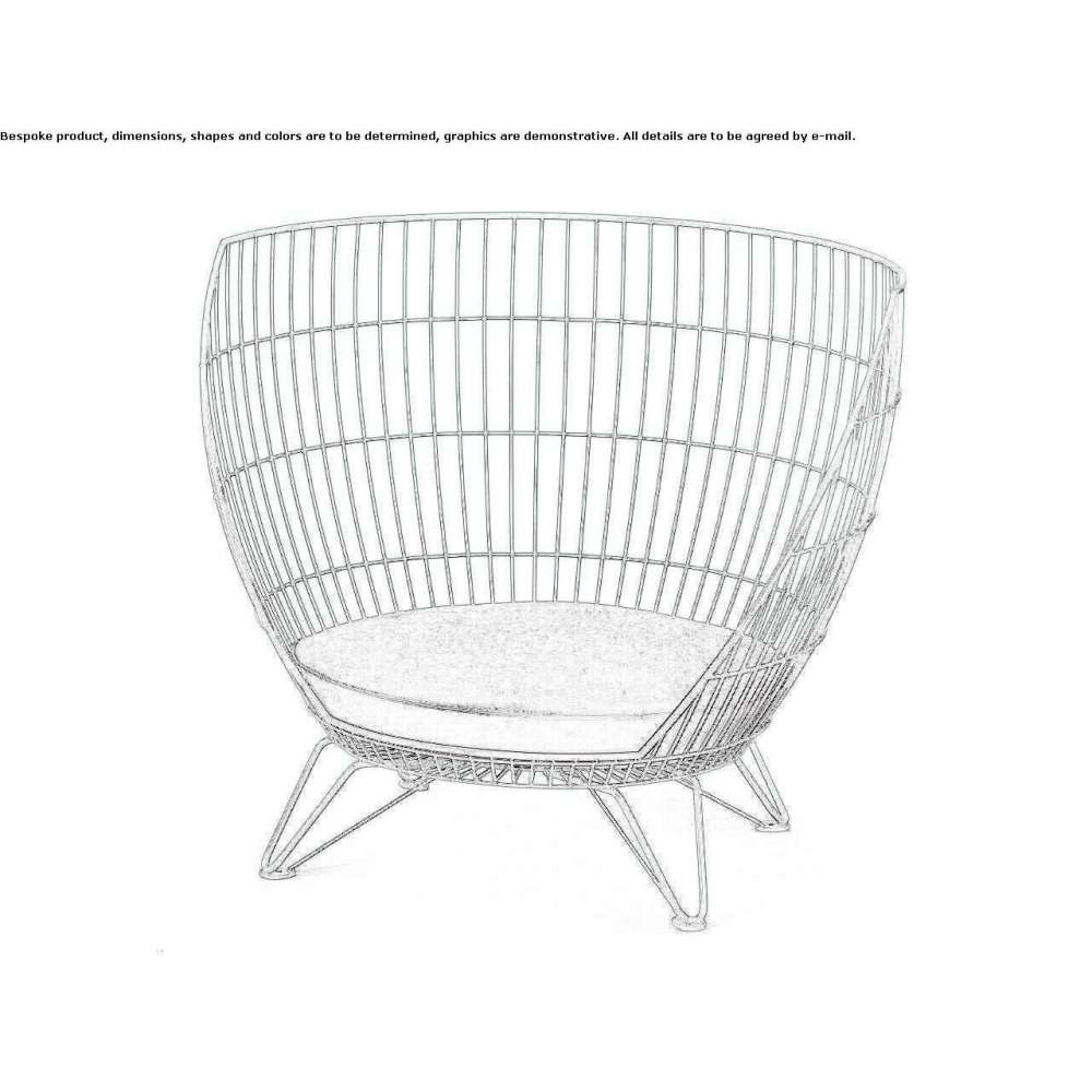 Otwarta, przypominająca siatkę struktura koszyka zapewnia komfort dużego fotela, a jednocześnie jest lżejsza niż solidne siedzisko. Boki unoszą się ku górze, tworząc obszerne i wygodne oparcie. Deszcz i woda spływają bez pozostawiania trwałych śladów, dzięki czemu siedzenia są praktycznie bezobsługowe. Seria składa się z dwóch rozmiarów. Do wersji zewnętrznych można zamówić drewniane siedzenia lub poduszki z tkaniny, natomiast do użytku wewnątrz pomieszczeń dostępna jest skórzana poduszka do siedzenia. Obie poduszki dopasowują się do konturów ramy i zwiększają ogólny komfort siedzenia.