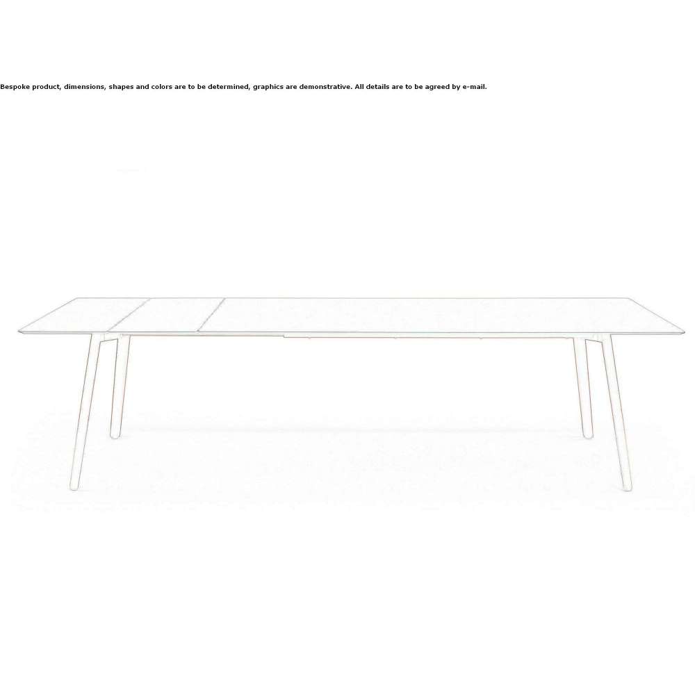 Squid to rozkładany prostokątny stół wykonany z odlewu ciśnieniowego aluminium i HPL. Nazwa Squid od razu nawiązuje do natury, nawiązując do „kości mątwy”, która podsumowuje niezwykły kształt nogi. Stół ten dostosowuje się do różnych środowisk, od pomieszczeń wewnętrznych do zewnętrznych, od domu do biura, od przestrzeni publicznych po catering; jest dostępny w różnych kształtach i rozmiarach, może pomieścić blaty nie tylko z HPL, ale także z marmuru, a ponadto może być zarówno stały, jak i rozkładany. Dlatego Squid przypomina złożony system, który wymaga użycia różnych materiałów i technologii produkcji. Rezultatem jest produkt wysoce elastyczny i konfigurowalny, ale także prosty w montażu i pielęgnacji. Cechą charakterystyczną tego projektu jest noga z odlewanego ciśnieniowo aluminium, która wraz z metalowymi ramami o różnych kształtach i rozmiarach tworzy obszerną i różnorodną kolekcję stołów. Z estetycznego punktu widzenia rewolucjonizuje tradycyjną interpretację „płaskiej” nogi na rzecz bardziej oryginalnego kształtu „cuttlebone”, co zaowocowało nazwą projektu. Dzięki temu noga jest tak lekka w swoim kształcie, jak solidna w swoim materiale. Widoczna z przodu niewielka zmiana w powierzchni wzdłużnej ma dwa cele: dodanie „wypustki” do nogawki, aby była ona solidniejsza i stworzyła ciekawy kontrast świateł i cieni. Metalowa rurowa rama uzupełnia część konstrukcyjną projektu i jest tak zwymiarowana, aby można było w niej umieścić również bardzo duże stoły z ciężkimi blatami z marmuru, bez utraty stabilności.