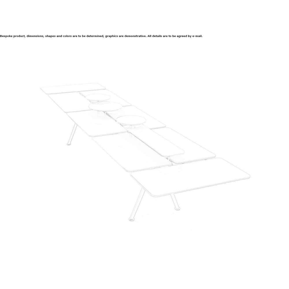 Podstawa: nogi i łączenia z odlewanego aluminium lakierowane na połysk, centralna deska pod blatem z wytłaczanego aluminium lakierowana na połysk. Regulowane nóżki aluminiowe.