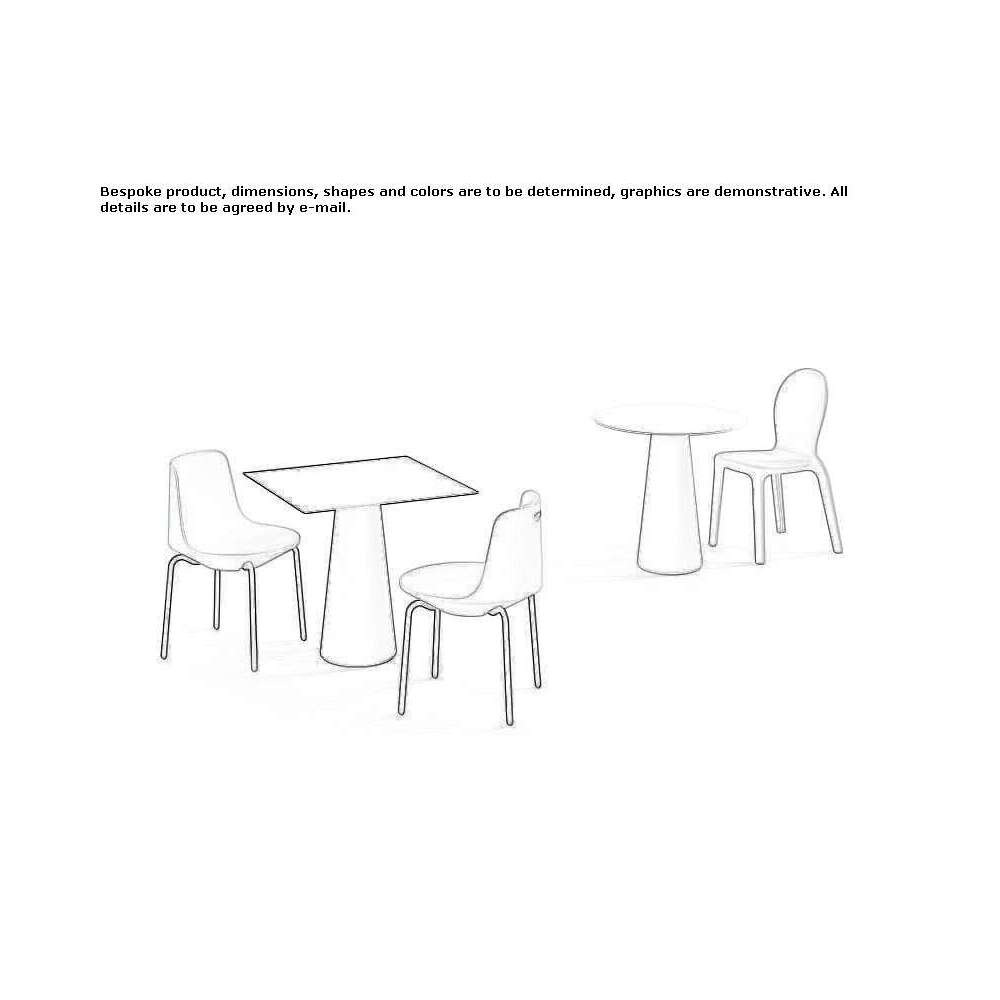 Stół dopasowany do stołka „Fura”. Stożkowa podstawa zapewnia mu dodatkową stabilność, a blat z HPL sprawia, że jest trwały i łatwy w czyszczeniu. Nadaje się do każdego wnętrza i na zewnątrz.
