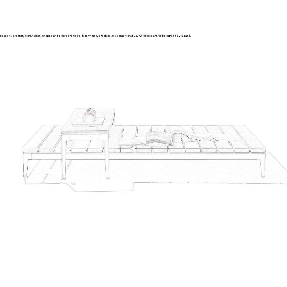 Elegancko zwężane nogi są wykonane z odlewanego aluminium i są dostępne w szerokiej gamie wyrafinowanych kolorów z powłoką proszkową z żywicy epoksydowej. Blat bez ostrych krawędzi dostępny jest w wersjach z listwami z drewna iroko lub w następujących rodzajach kamienia: Beola Argentata, Pietra del Cardoso, Lava i Porphyry.