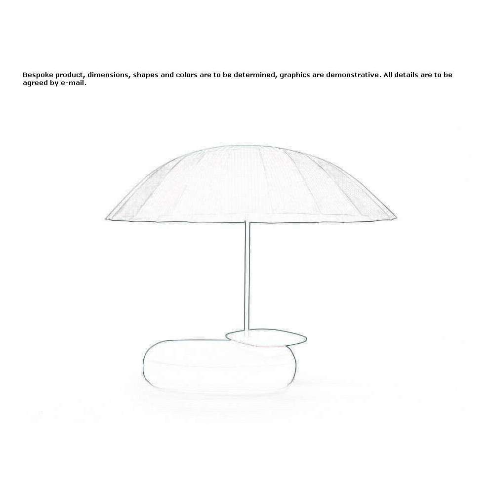 Konstrukcja wykonana z lakierowanego aluminium. Stoliki boczne można przymocować do stojaka parasola na żądanej wysokości; zmianę położenia można uzyskać za pomocą przegubu umieszczonego pod stołem.