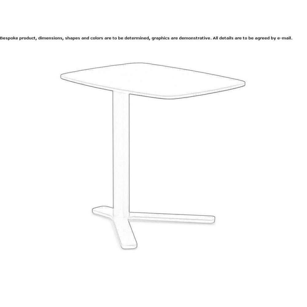 YO to stolik boczny do użytku zewnętrznego ze stałą wysokością, podstawą i kolumną ze stali nierdzewnej Aisi 316L malowanej proszkowo. Blat z laminatu Fenix® 10 mm dostępny w kilku kształtach.