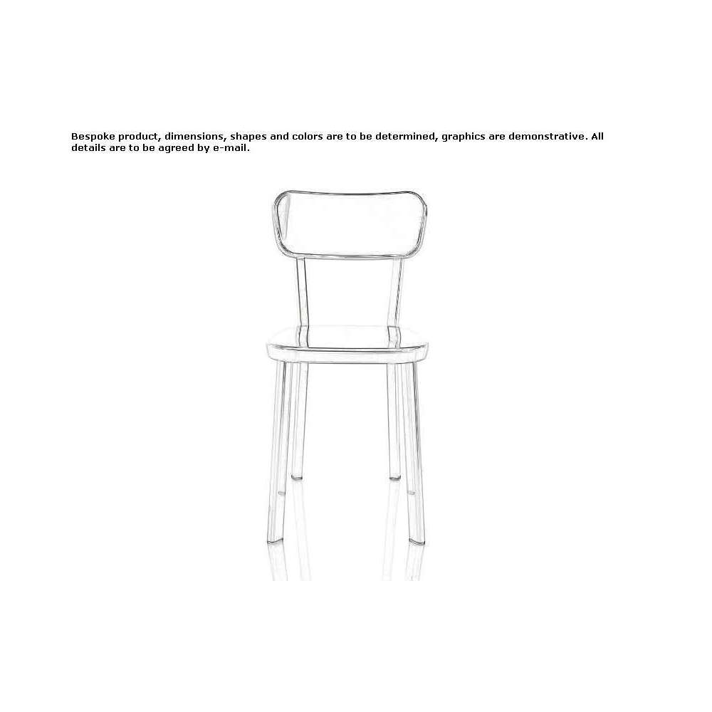 Krzesło. Materiał: nogi z wytłaczanego aluminium, polerowanego lub malowanego. Siedzisko i oparcie z odlewanego ciśnieniowo aluminium, polerowanego lub malowanego proszkiem poliestrowym. Dostępne wersje do użytku na zewnątrz. Zmniejszający palność.