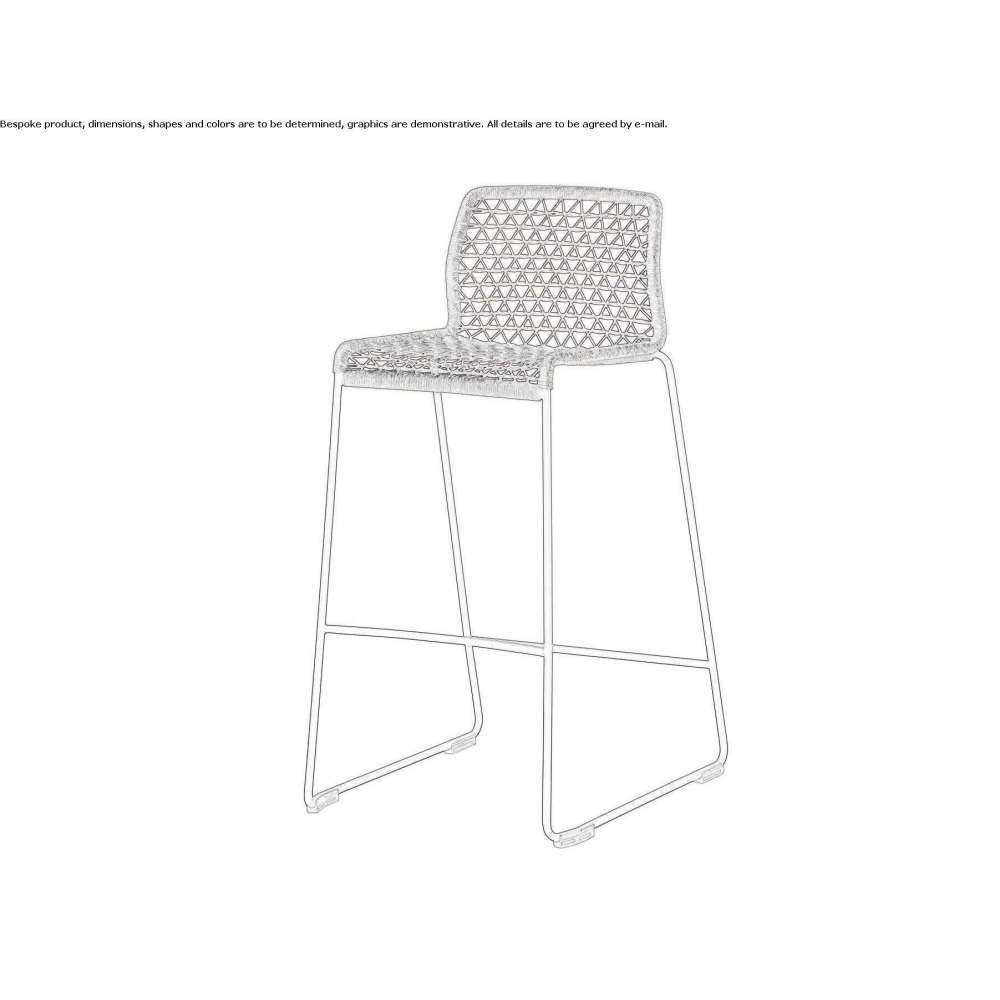 Stołek z kolekcji Vela, dostępny w wersji wysokiej i niskiej, wykonany jest z chromowanej lub malowanej metalowej konstrukcji, wokół której oplecione jest siedzisko i oparcie z liny surowej, morskiej lub PCV. Rodzina Vela składa się z krzesła, fotel, fotel wypoczynkowy, stołki i sofa, to idealne połączenie designu i rzemiosła: zwinna konstrukcja z malowanego metalowego pręta z nogami sań połączona jest z ręcznie wykonanym splotem, który stanowi jego element wyjątkowości.