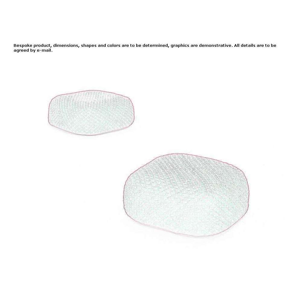 Pufy dostępne w dwóch rozmiarach, pokrycie wewnętrzne z tkaniny, pokrycie zewnętrzne z ręcznie tkanych warkoczy.