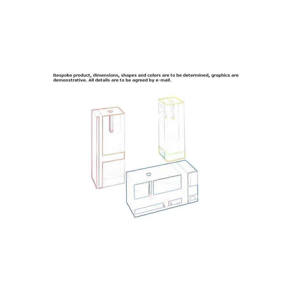 Wazon akrylowy od Tomoko Mizu jest wykonany z plexiglass® i jest dostępny w trzech różnych rozmiarach, w zestawach kolorystycznych. Przezroczyste wykończenie uzupełniają kolorowe wstawki, tworząc dekoracje o zdecydowanie geometrycznym charakterze: czerwono-pomarańczowym, fluo żółtym i niebiesko-fioletowym.